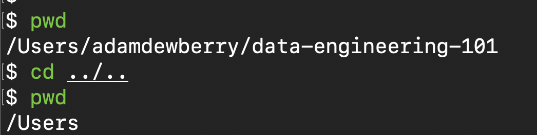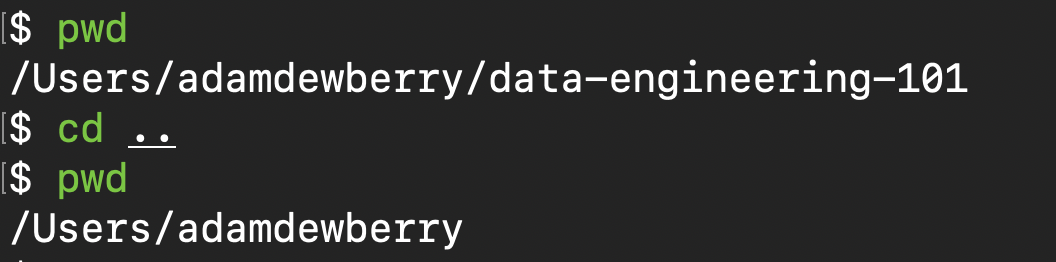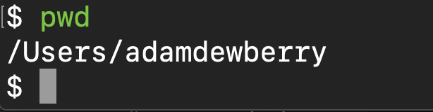 The result returned tells me I’m in the directory /Users/adamdewberry